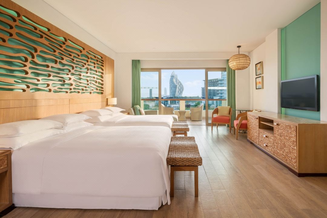酒店客房和套房均配備私人陽(yáng)臺(tái),可飽覽心曠神怡的海景、園林和泳池景觀。海洋主題的4大2小家庭套房、小黃鴨和貝親主題親子房等各具特色。
